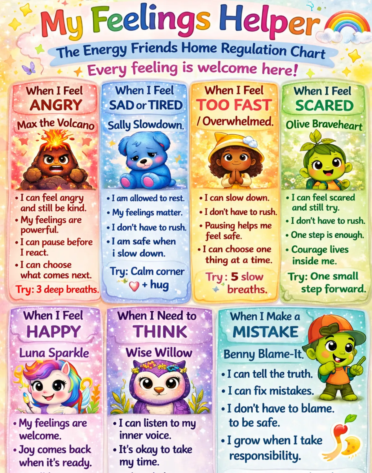 These beautiful charts introduce the Energy Friends and help children practice one powerful skill: